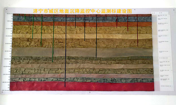 大 ↕ &(dà)千雕塑公司為(wèi)濟甯城(chéng)區(qū)地(dì← ♣")面沉降監測中心制(zhì)作(zuò)了(le)地(dì)質結構σ♦示意圖雕塑。便于工(gōng)作(zuò)人(rén)員(yuᙥ₩án)形象直觀的(de)觀察學習(xí)。